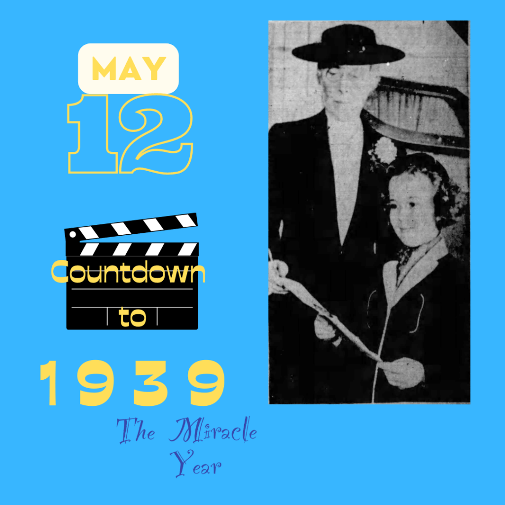 • Shirley Temple is appointed sponsor of National Airmail Week. She is visited on the set of ‘Little Miss Broadway’ for the presentation by acting Postmistress of Los Angeles, Mary D Briggs.