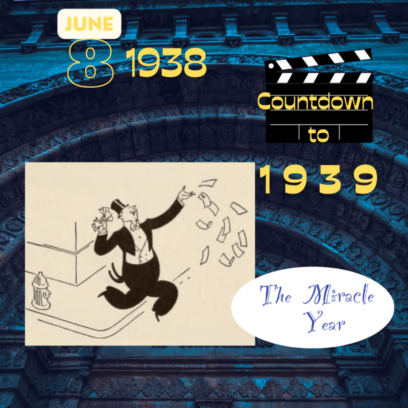 - UA has planned 30 films for the 1938-39 season – all to be A pictures, no Bs. Budgeted at a million or more apiece. Charlie Chaplin “threatens” to make one. [This would be The Great Dictator. He’d been working on it all of 1938, and did not start shooting until Sept 1939. It was released in 1940]. Rumors were swirling around as to whether Selznick will renew or not with UA. He does have two obligations under the old contract, (one of which is ‘Made for Each Other’). No mention is made of his big projects – ‘Titanic’ and ‘Gone with the Wind.’ [‘Titanic’ was being talked about as a vehicle for Hitchcock, and more will be discussed about GWTW].
