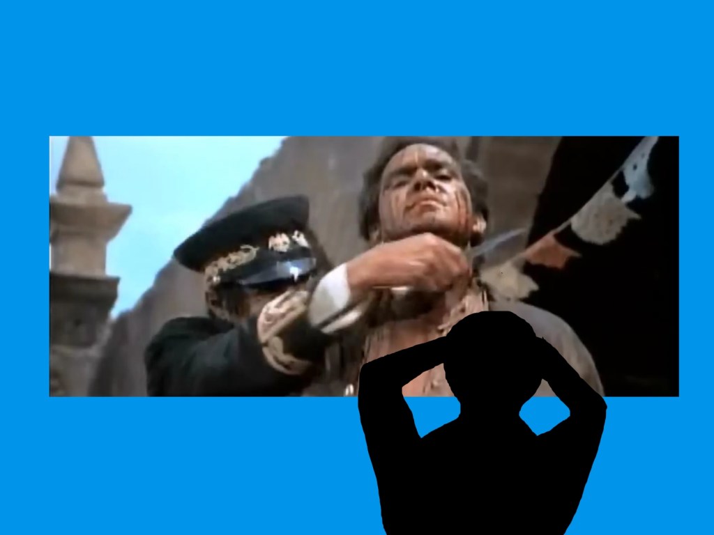 The Wild Bunch opened in our small house, Cinema II which only had 500 seats. It was an R-rated movie. And now being old enough to view it, I took it in on one of my days off. I don’t remember a movie to that date in my young life that was so disturbing. Sure, there had been moments in Lawrence of Arabia that played similar notes on my psyche, but they were not as explicit as the Wild Bunch. In LoA you saw the aftermath, not the blow by blow that was put up on the screen by Peckinpah. I have read that Peckinpah, when planning this film, wanted to make it as realistic as possible. He had it in his mind to translate his experiences hunting deer, to this violent story of men in conflict. His memory of the bullet impacting the body of the animal, led him to find ways to replicate that in the shoot outs that he would depict. Another WB movie had led the way in this matter. Bonnie and Clyde was one of the first films to use the squib, that explosive pack of red liquid attached to the body of the actor. Peckinpah set out to out-Bonnie and Clyde, Bonnie and Clyde. And he did.