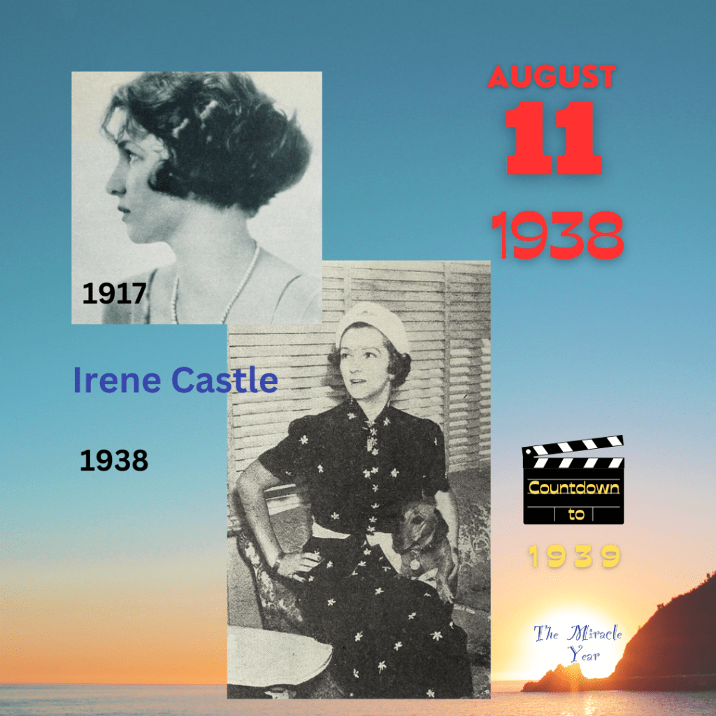 - Irene Castle McLaughlin arrived from Chicago today. The former dance partner and wife of Vernon Castle has been hired by RKO for their upcoming production ‘The Castles,’ which will star Astaire and Rogers. She will take on roles as costume designer, techincal advisor, and writer. [RKO paid her $20,000 for the rights to her life story. She collaborated with Oscar Hammerstein II as he worked on the script (others involved were writers Richard Sherman and Dorothy Yost). After Irene’s complaints about departures from the script, and about the costumes and hairstyle choices made by Rogers, they paid her an additional $5000. Rogers preferred to keep her long bob and not go with Castle’s shorter cut].
